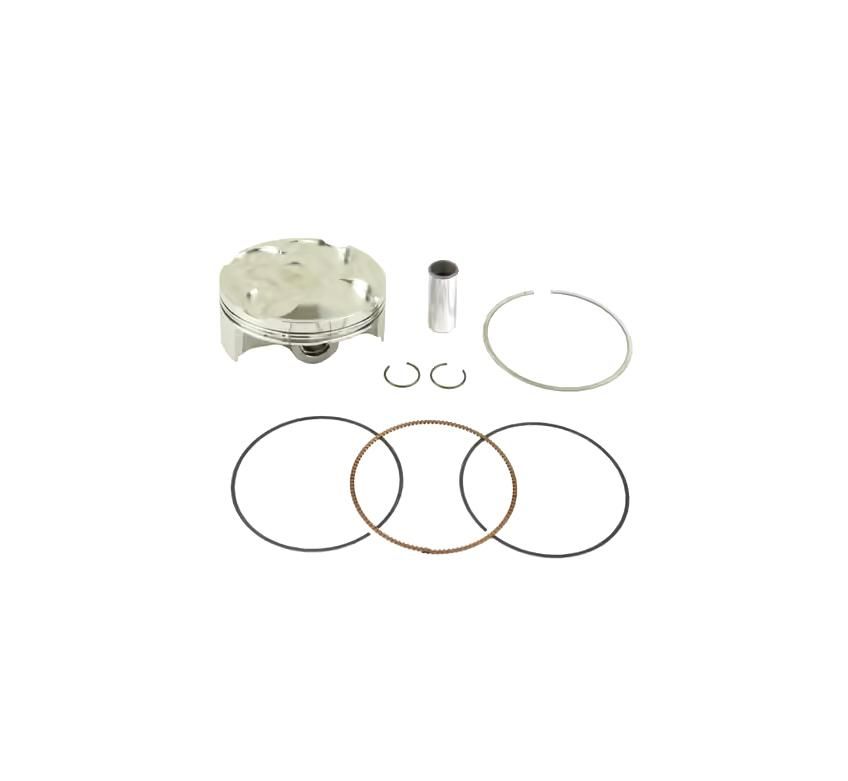This piston kit contains the piston, the pin, the circlips, and the piston rings. All components are replaceable and interchangeable in case of need.