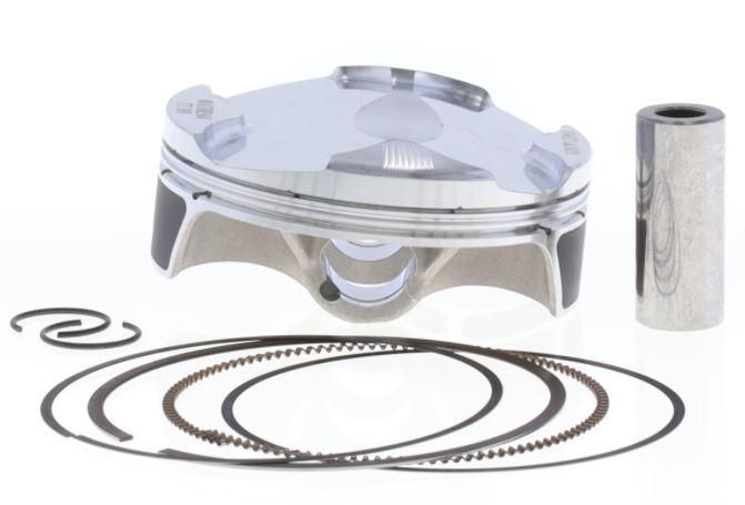 This piston kit contains the piston, the pin, the circlips, and the piston rings. All components are replaceable and interchangeable in case of need.