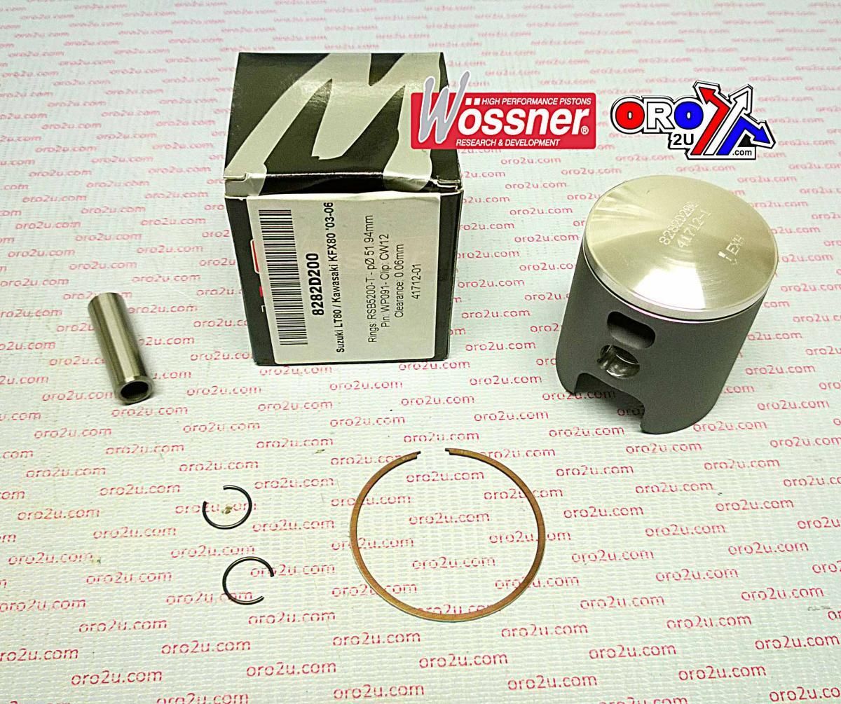 The 50mm Bore Wossner Piston Kit (Part No. 8282DA) is a standard size forged piston developed for Kawasaki KFX80 (2003–2006) and Suzuki LT80 (1982) models. Precision-manufactured in Germany, this piston features an elliptical design that ensures even load distribution under thermal expansion, reducing the risk of piston failure. It is designed to optimise heat transfer and enhance durability in two-stroke engines.