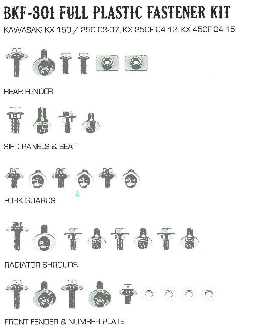 PLASTIC BOLT KIT KAWASAK STYLE, FULL PLASTIC FASTENER KIT