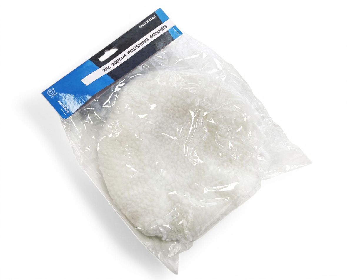 POLISHING BONNETS 2PC 240mm SIMULATED LAMBS WOOL AND TERRY CLOTH – TOOLZONE KDPAB008