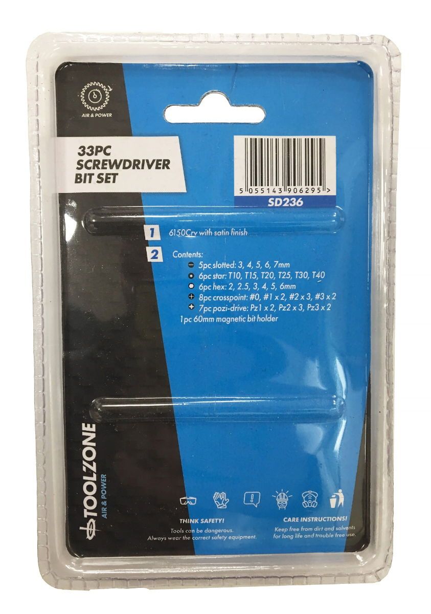 POWER BIT SET CRV 33PC WITH HOLDER SLOT 3-7mm PHILLIPS 0-3 POZI 1-3 HEX 2-6 STAR T10-T40 – TOOLZONE KDPSD236