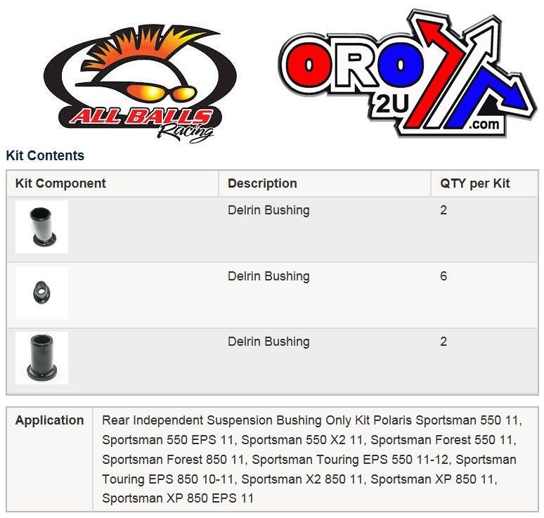 - Cost-effective kit containing all necessary components to rebuild one side of an ATV rear suspension.