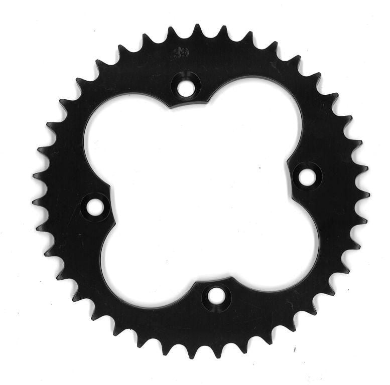 - Each sprocket is sandblasted to reduce surface tension, satin-silk finish or Power coated Black.