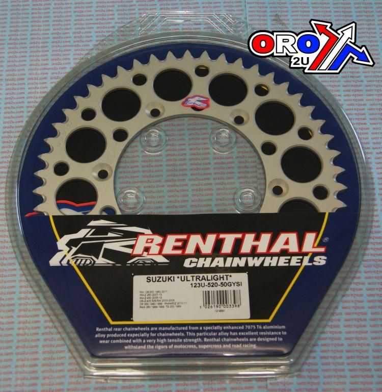 REAR SPROCKET ALLOY RENTHAL, ULTRALITE 123U-520-50GYSI SILVER, 123U-520-50GYSI