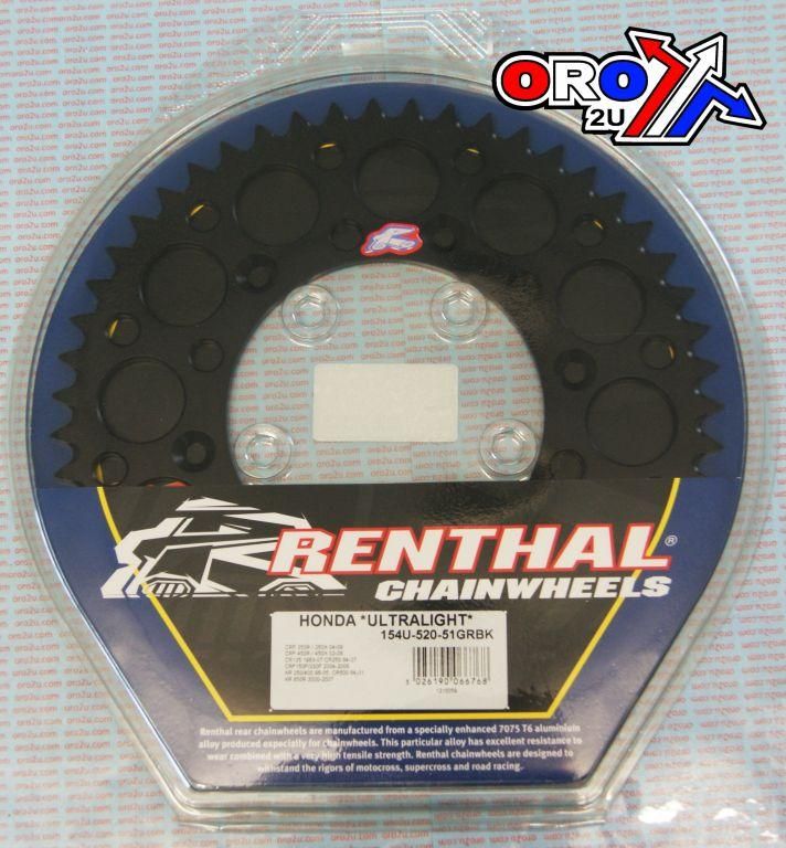 REAR SPROCKET ALLOY RENTHAL, ULTRALITE 154U-520-51GRBK