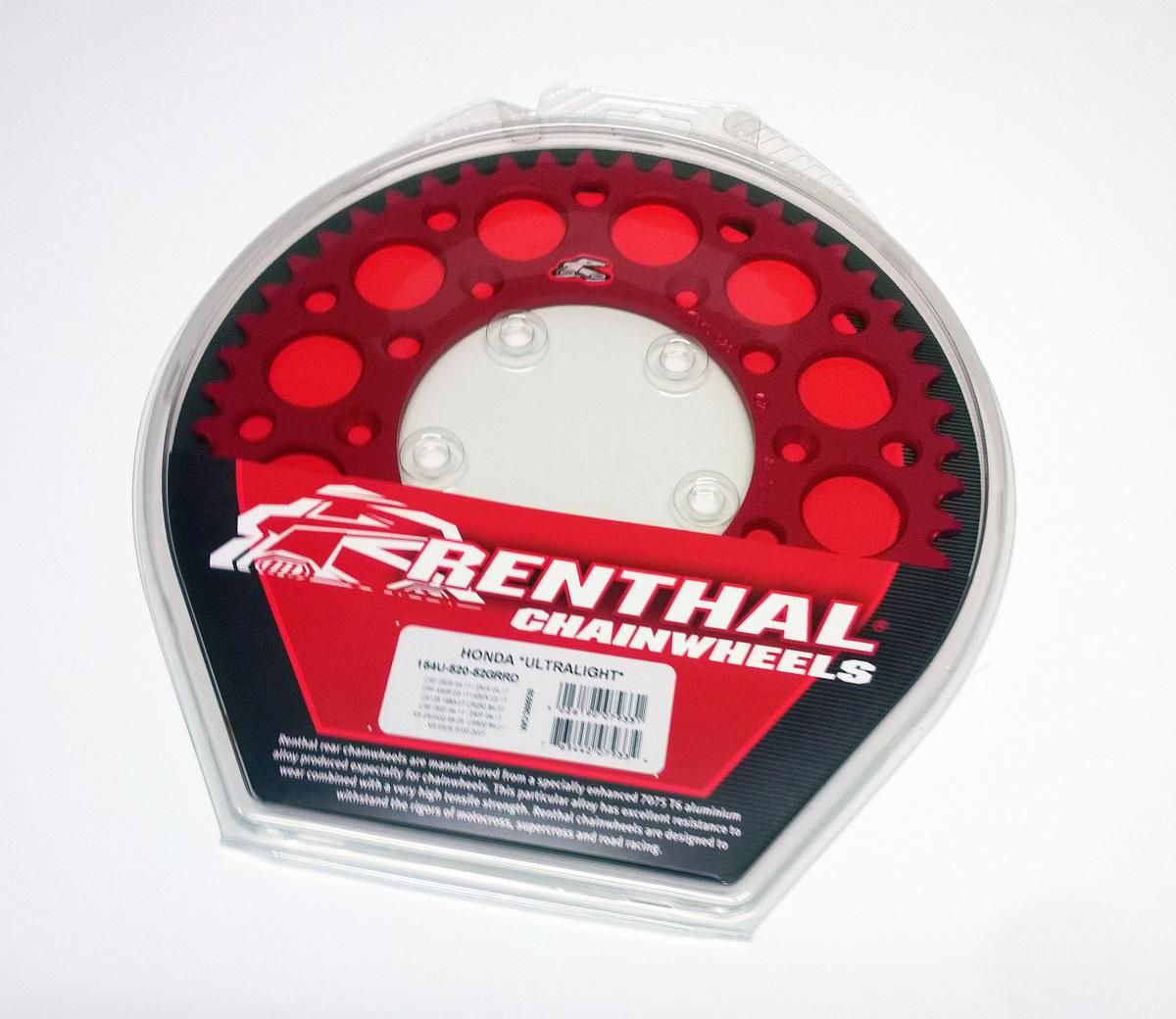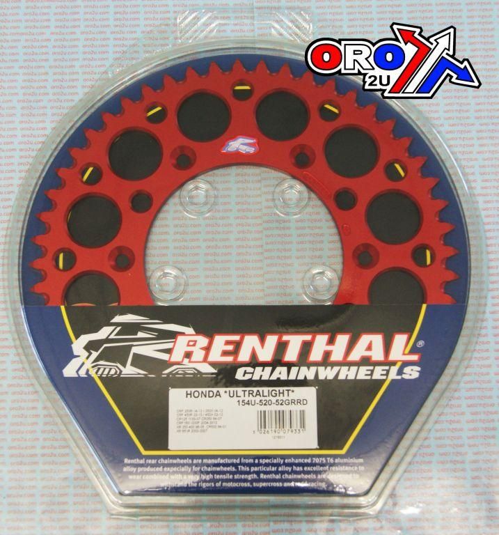 REAR SPROCKET ALLOY RENTHAL, ULTRALITE 154U-520-52GRRD RED