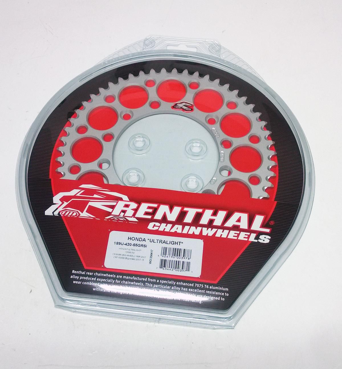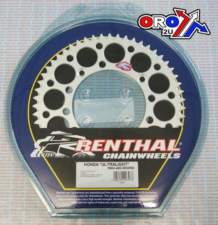 REAR SPROCKET ALLOY RENTHAL, ULTRALITE 189U-420-55GRSI SILVER