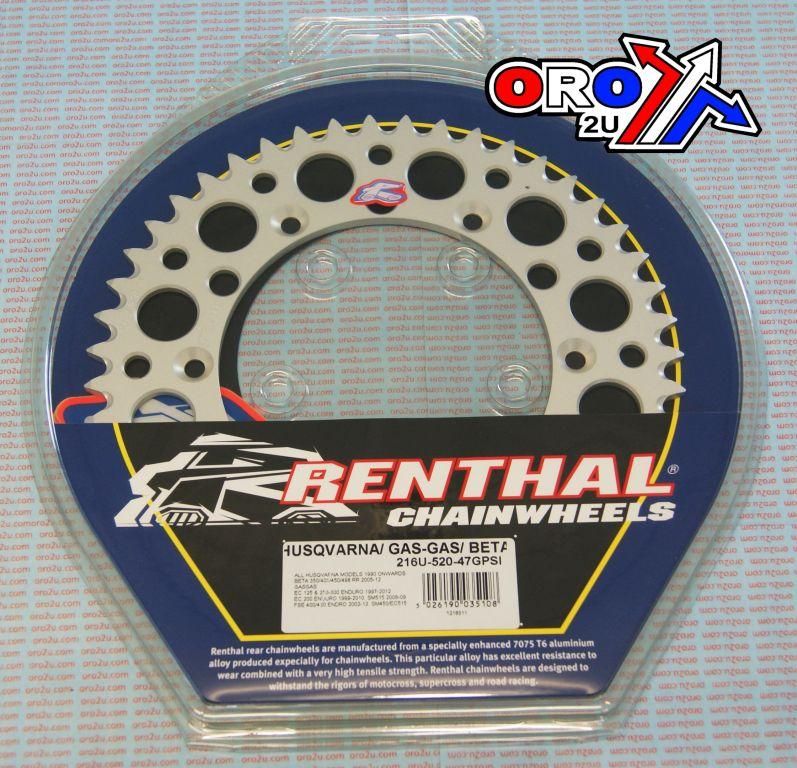 REAR SPROCKET ALLOY RENTHAL, ULTRALITE 216U-520-47GPSI SILVER, HUSQVARNA / GASGAS / BETA