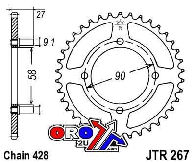 REAR SPROCKET STEEL JTR267 39 TEETH, 428 CHAIN TYPE
