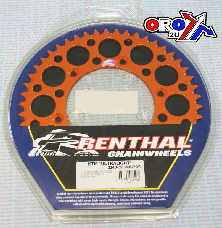 REAR SPROCKET RENTHAL KTM, ULTRALITE 224U-520-50GPOR ORANGE, 224U-520-50GPOR