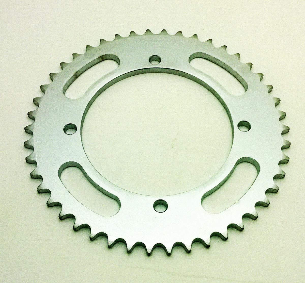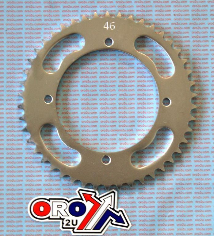 This rear steel sprocket features 46 teeth and is designed for durability and performance in off-road motorcycles. Manufactured from high-strength C45 high carbon steel, it offers a reliable balance of strength and weight. Each sprocket is heat-treated, hand-finished, and sandblasted to reduce surface tension, ensuring consistent quality and a satin-silk finish. Compatible with 420 chains, it fits a range of Kawasaki and Suzuki models.
