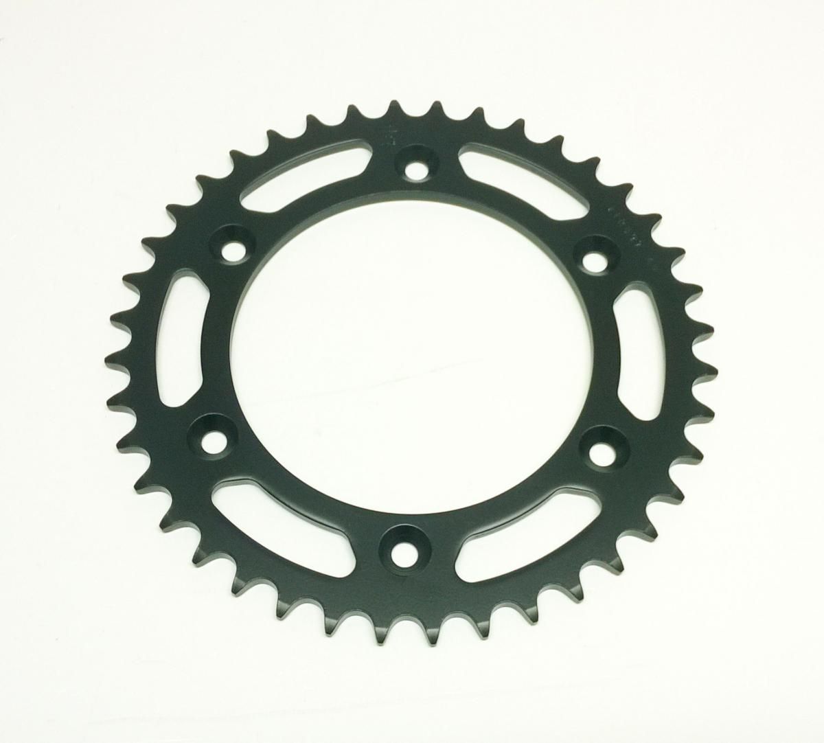 Maximum strength sprockets at minimum weight; front sprockets made with C45 steel and SCM415 chromoly steel alloy — rear sprockets made with C45 high-carbon steel Each sprocket is heat treated and sandblasted to lower material surface tension.