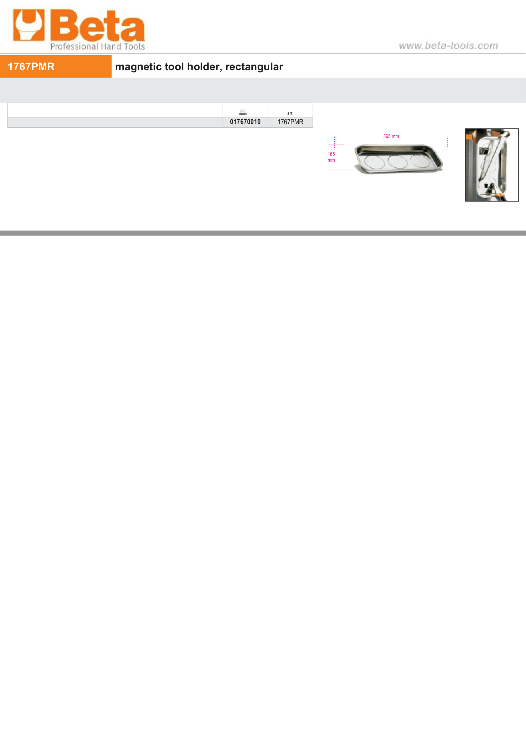 The Beta Tools Rectangular Magnetic Tool Holder – Beta Tools 1767PMR is a practical and efficient solution for organizing and storing tools in your workspace. This magnetic holder is ideal for professionals and DIY enthusiasts, providing a reliable way to keep tools easily accessible and neatly arranged.