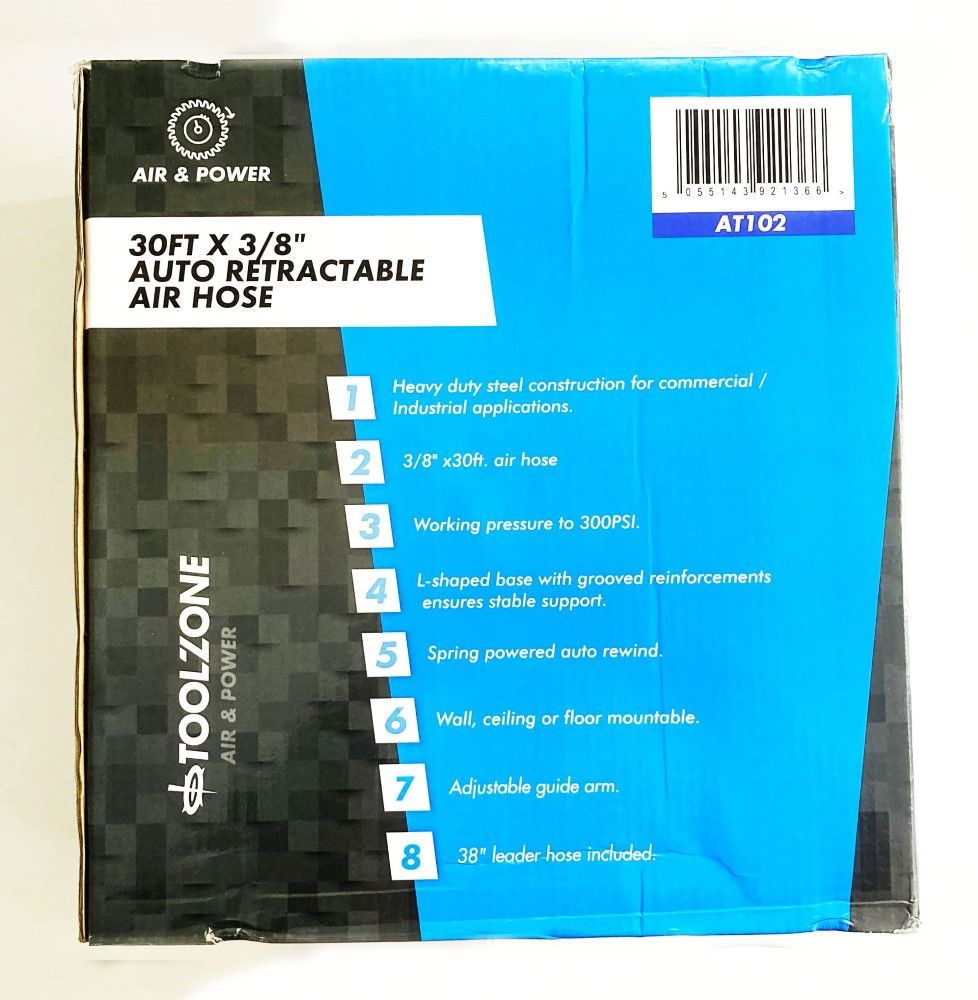 RETRACTABLE AIR HOSE 30ft 3/8″ WORKING PRESSURE 300psi AUTO REWIND – TOOLZONE KDPAT102