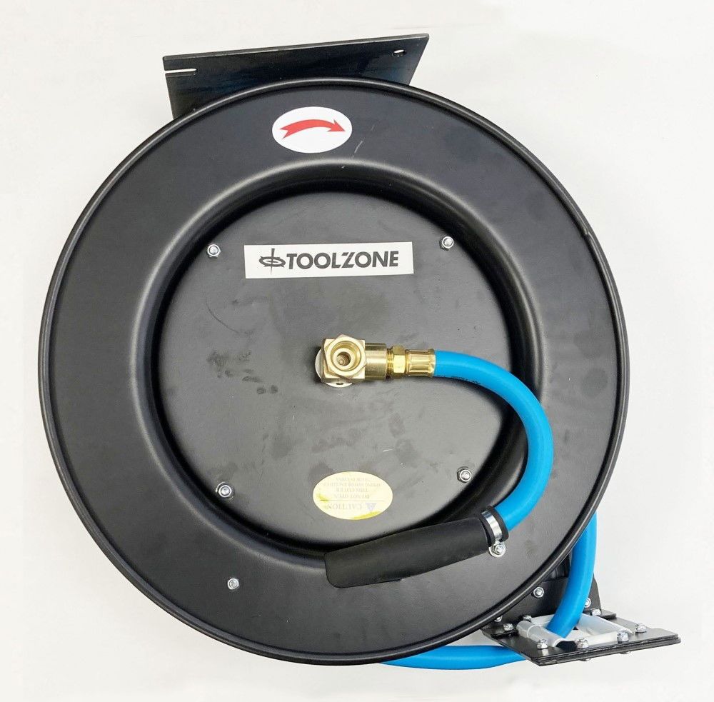 RETRACTABLE AIR HOSE 50ft 1/2″ WORKING PRESSURE 300psi AUTO REWIND – TOOLZONE KDPAT104