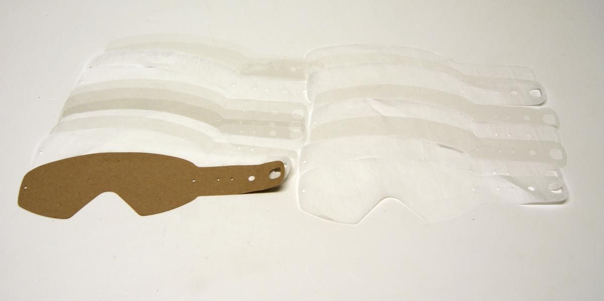Our Tear offs follow the original manufactures’ fitting systems. These Tear offs are available in most major brands and come in a pack of 10. They are able to fit over a normal Tear off goggle with tear off pegs or on top of a Roll off system with pegs.