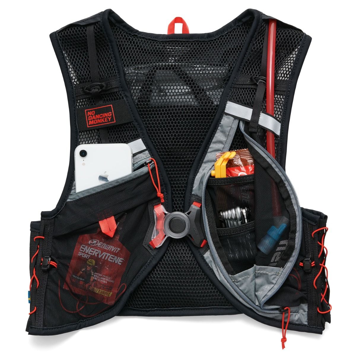 - Five quick-access front pockets for nutrition, phone, multi-tool and other essentials, with two zippered pockets for added security