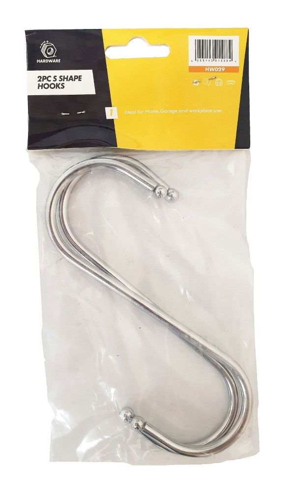 S HOOKS 2pc LARGE 160mm x 6mm CHROME PLATED STEEL BALL END – TOOLZONE KDPHW029
