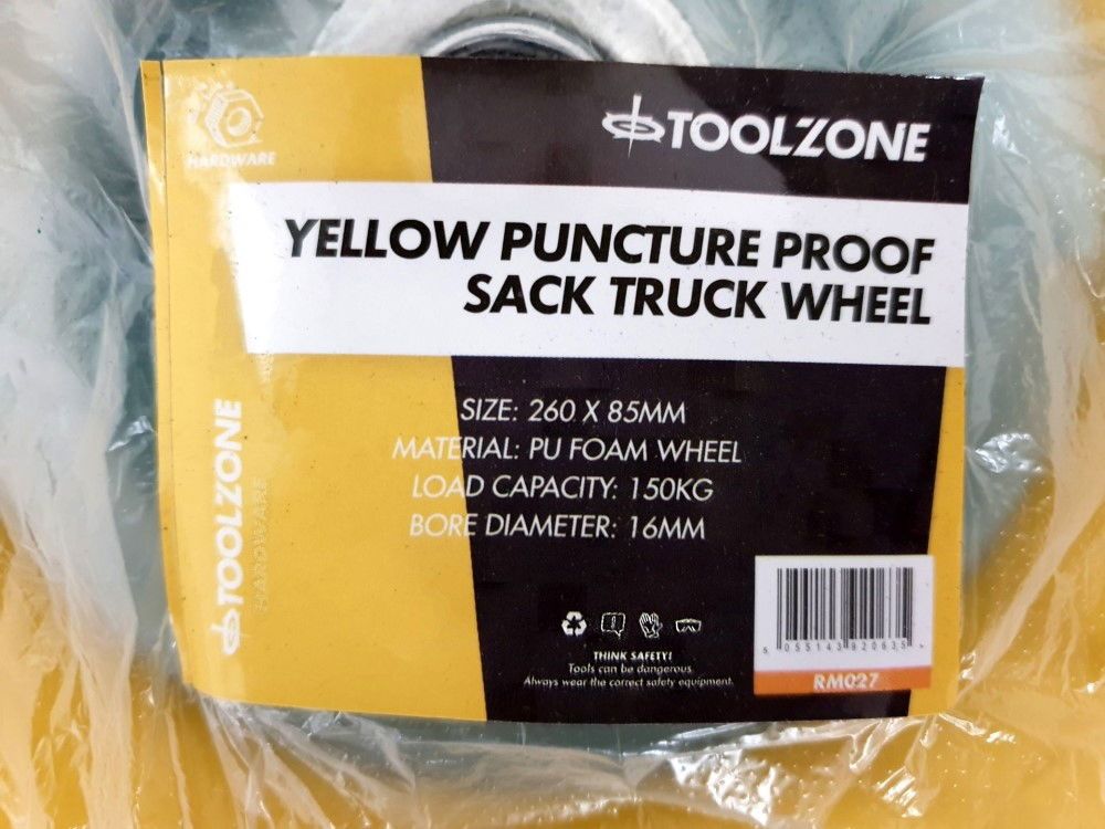 SACK TRUCK WHEEL PUNCTURE PROOF YELLOW 260x82mm 16mm BORE – TOOLZONE KDPRM027