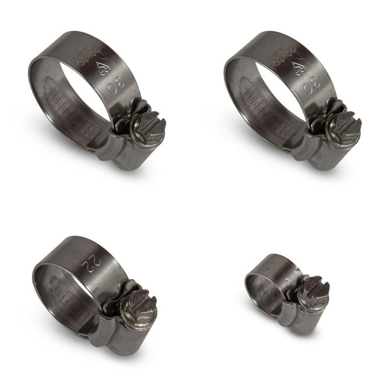 These hose clamps are entirely made from marine-grade 304 W5 stainless steel and have a 13mm wide band which increases their clamping force.