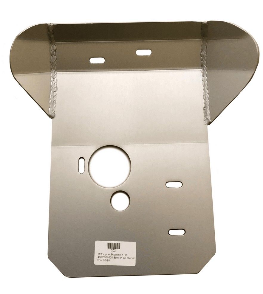 This skid plate is designed for all KTM 4-stroke dual sport models equipped with a spin-on oil filter located at the front. It provides full coverage and durable protection for off-road and dual sport applications. Constructed from enduro-grade alloy, it includes heat-treated chrome-moly mounting clamps and all necessary hardware for installation.