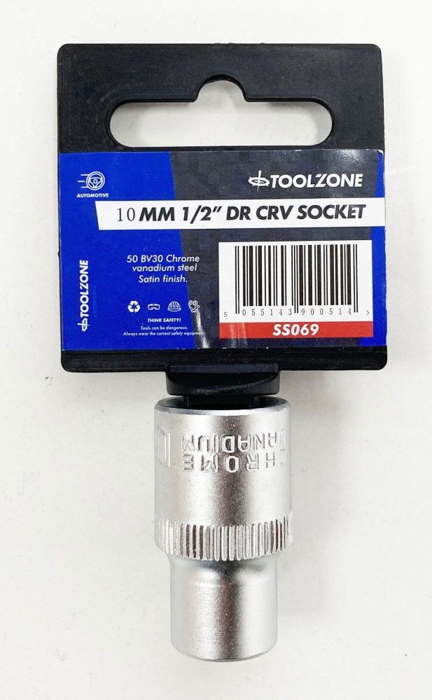 SOCKET 1/2″ DRIVE 10mm CRV SATIN SINGLE HEX – TOOLZONE KDPSS069