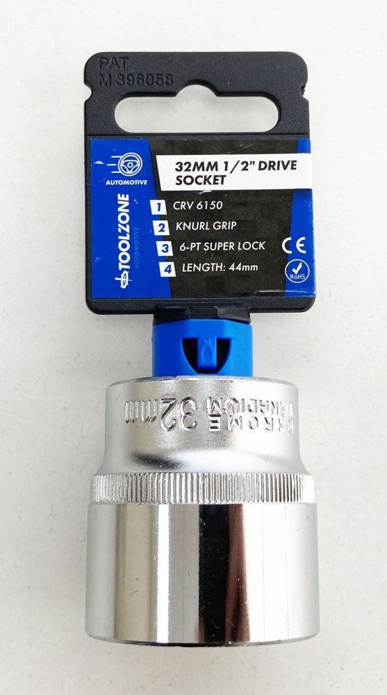 SOCKET 1/2″ DRIVE 32mm CRV SATIN SINGLE HEX – TOOLZONE KDPSS088