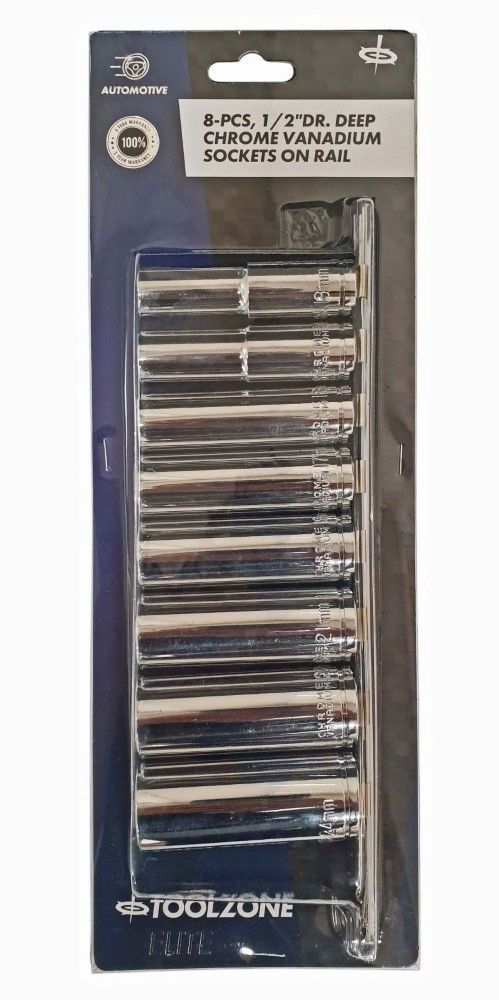SOCKET SET 1/2″ DRIVE DEEP CRV 8 PIECES 13-24mm SINGLE HEX – TOOLZONE KDPSS098