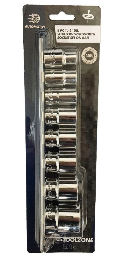 SOCKET SET 1/2″ DRIVE SHALLOW WHITWORTH 8 PIECES 3/16-5/8ww – TOOLZONE KDPSS099