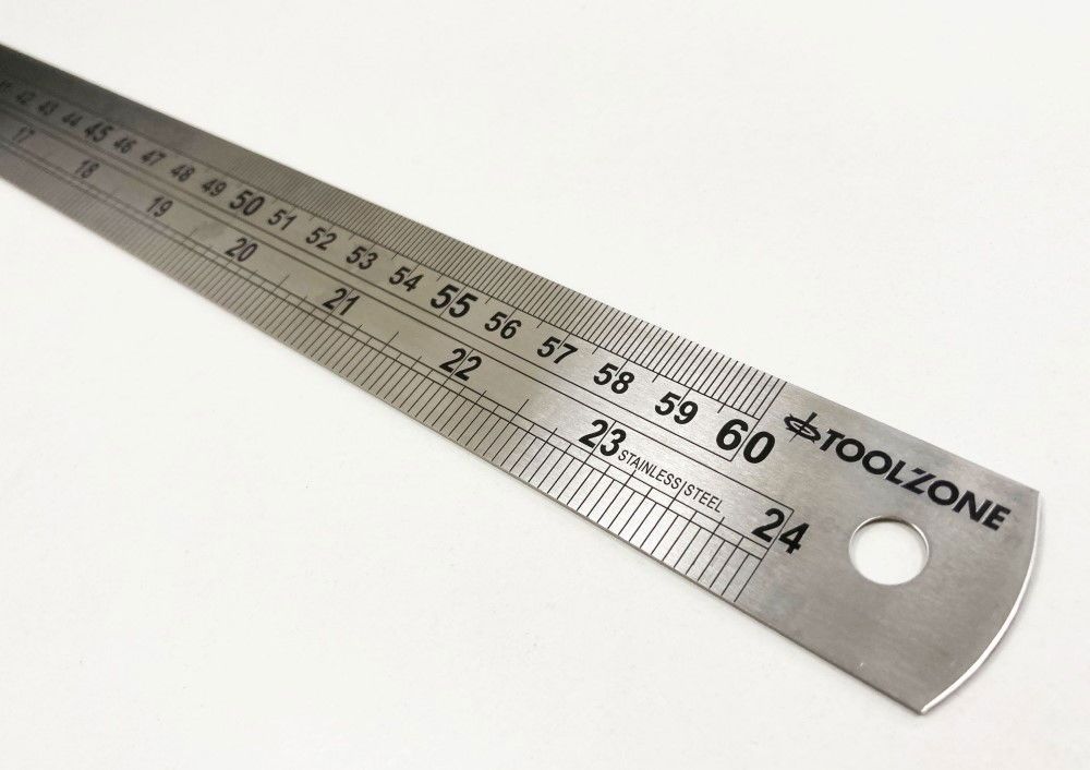 STAINLESS STEEL RULER 24″ 1.2mm THICKNESS METRIC AND IMPERIAL – TOOLZONE KDPMS101