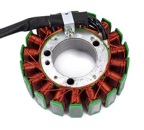 This engine generator stator coil is a direct replacement component designed to meet or exceed OEM standards. It is built to handle increased power loads and is factory tested for full reliability.