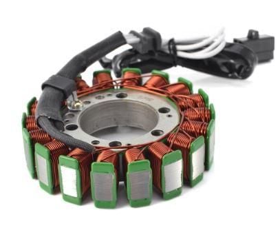 This stator coil is a direct OEM replacement designed for various Kawasaki motorcycle models, including Versys KLE650, Ninja 650R (EX650), and ER-6N (ER650). Manufactured to OEM specifications, it installs at stock mounting points and is capable of handling increased power loads. Each unit is fully factory tested before shipping to ensure reliable performance.