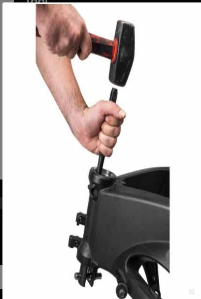 - Simply slide the tool under the bearing, wind to expand, and then tap the bearing race out using a drift bar.