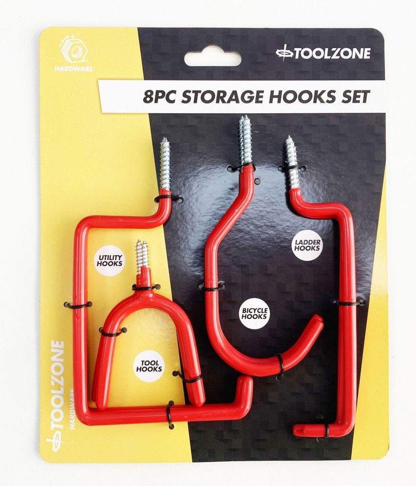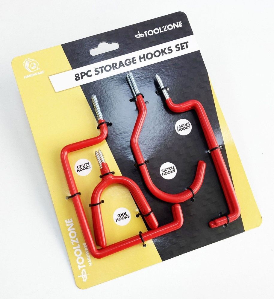 STORAGE HOOK SET 8pc RED PVC COATED ASSORTED SHAPES – TOOLZONE KDPHW061