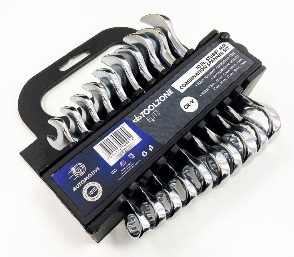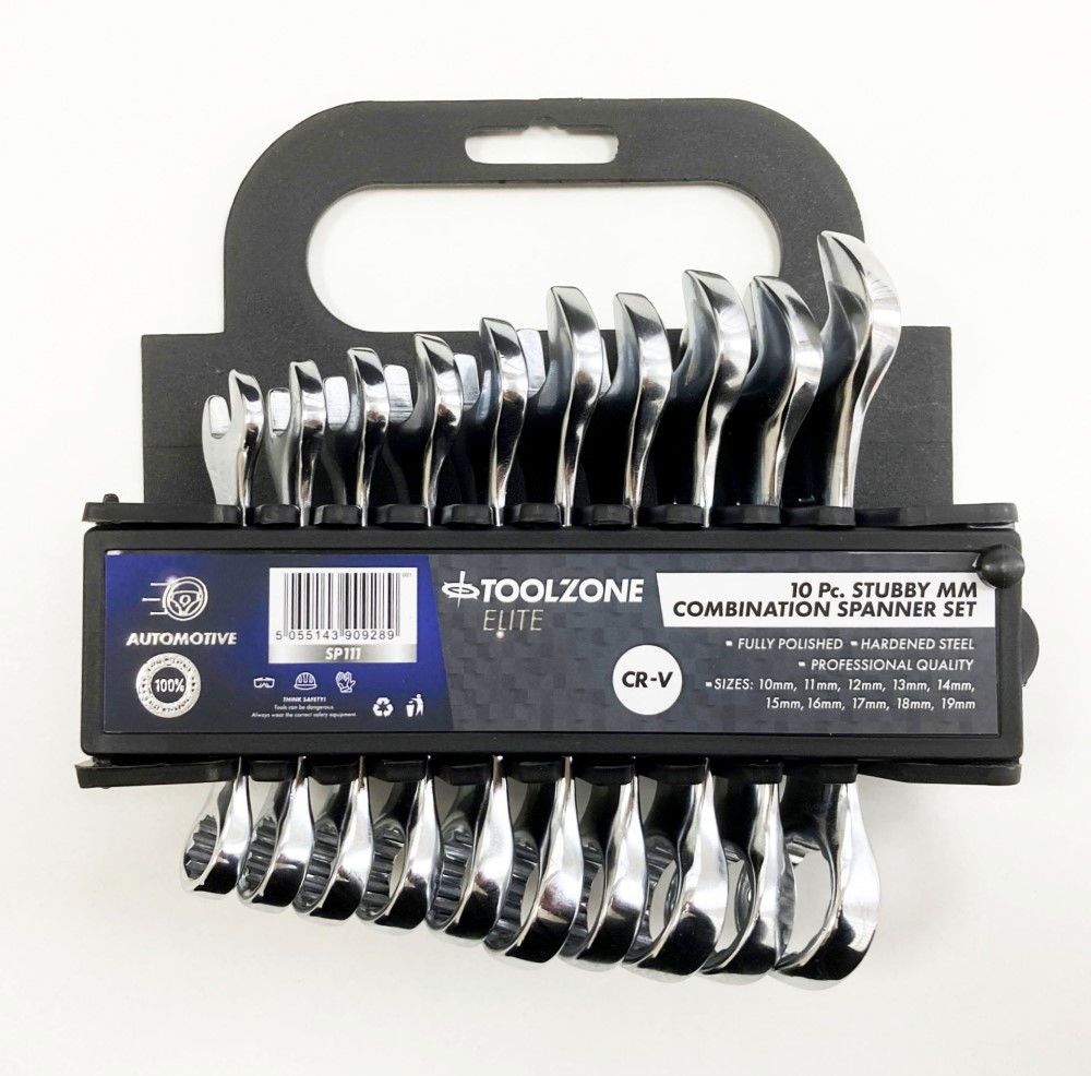 STUBBY SPANNER SET 10PC 10 TO 19mm FULLY POLISHED CHROME VANADIUM – TOOLZONE KDPSP111