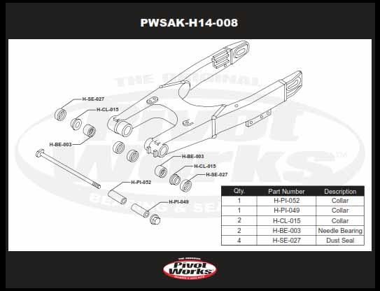 SWINGARM BEARING KIT CR80 CR85 CR150, PIVOT WORKS PWSAK-H14-008, HONDA CRF150, PWSAKH14008