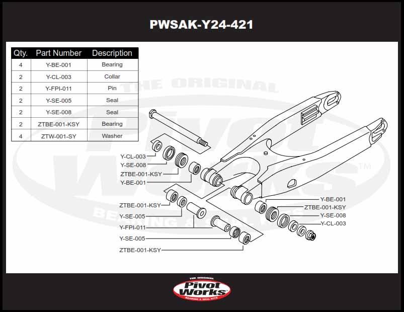 SWINGARM BEARING KIT YZ125, PIVOT WORKS PWSAK-Y24-421 YZ125 06-18