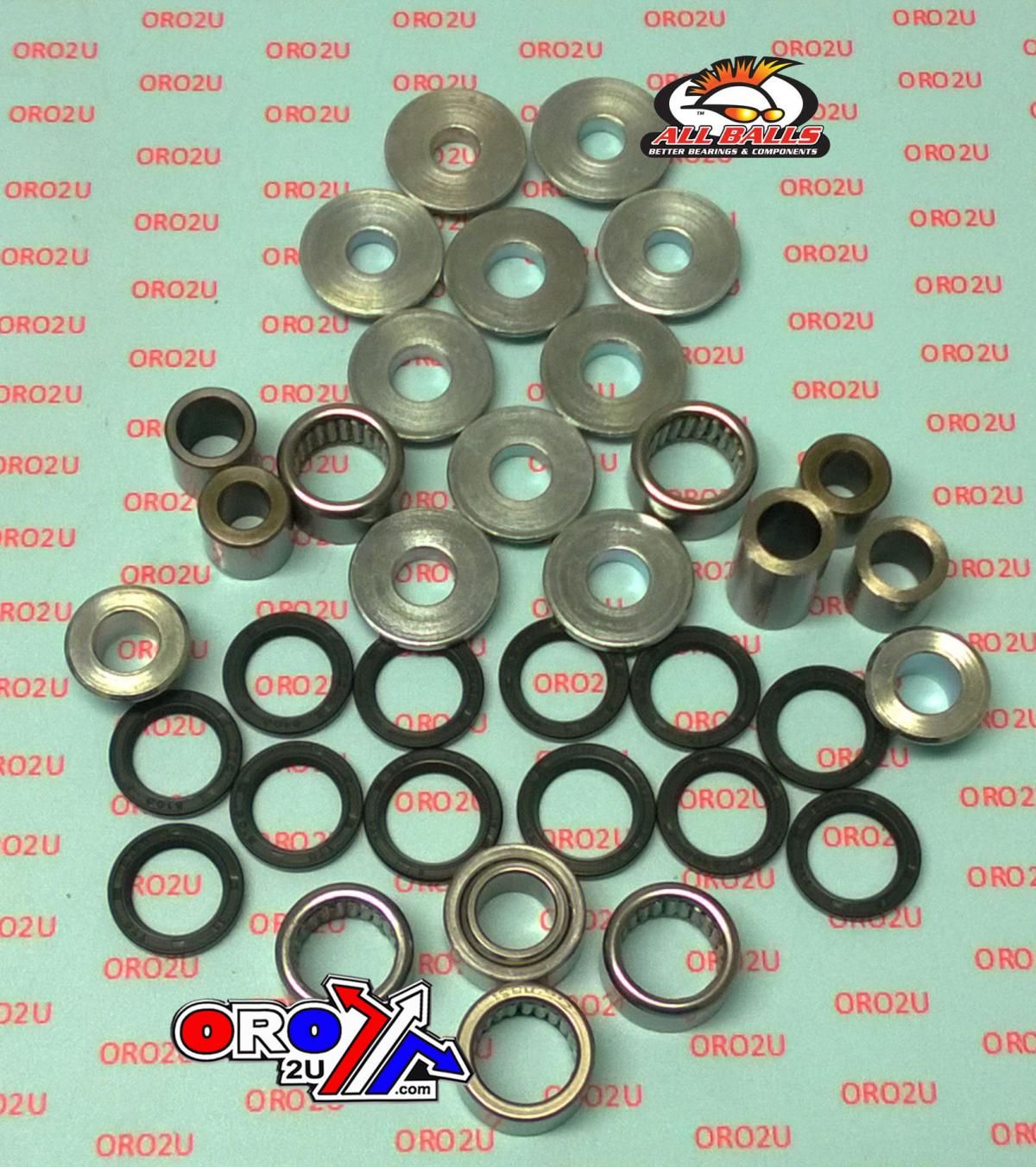 – Kit includes linkage bearings, shafts, seals and spacers, lower shock bears, seals and spacers.