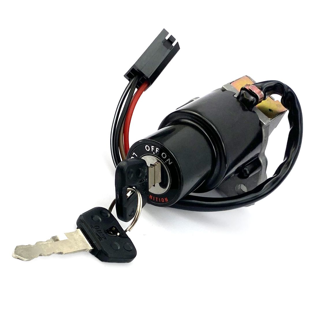 Main ignition switch with two keys, designed for Yamaha XT series models. This high-quality replacement is built to OEM standards and includes waterproof rubber boots and two OEM connector blocks for reliable performance and easy installation.