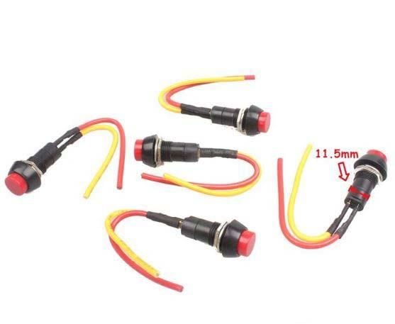 This latching push-on/push-off switch features a red locking push button and is supplied with wires for easy installation. Its compact design and durable plastic construction make it suitable for various applications, including car dashboards, boats, and motorcycles.