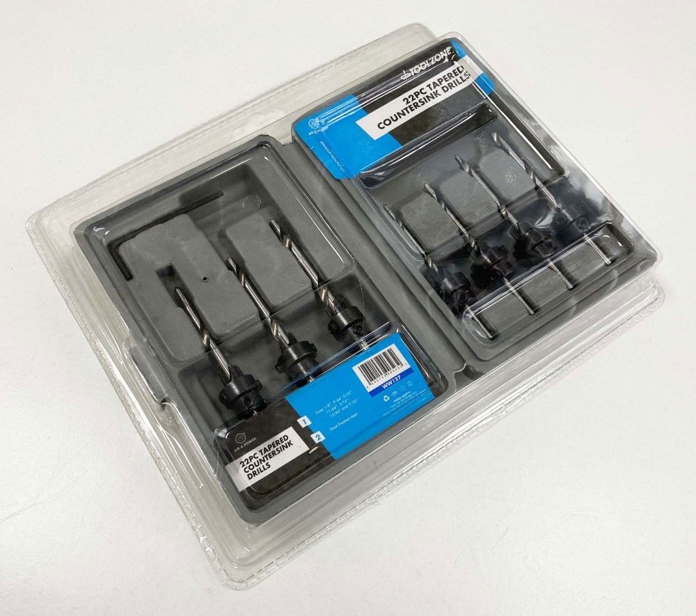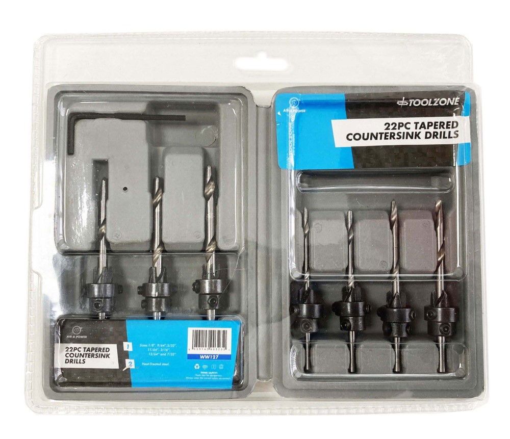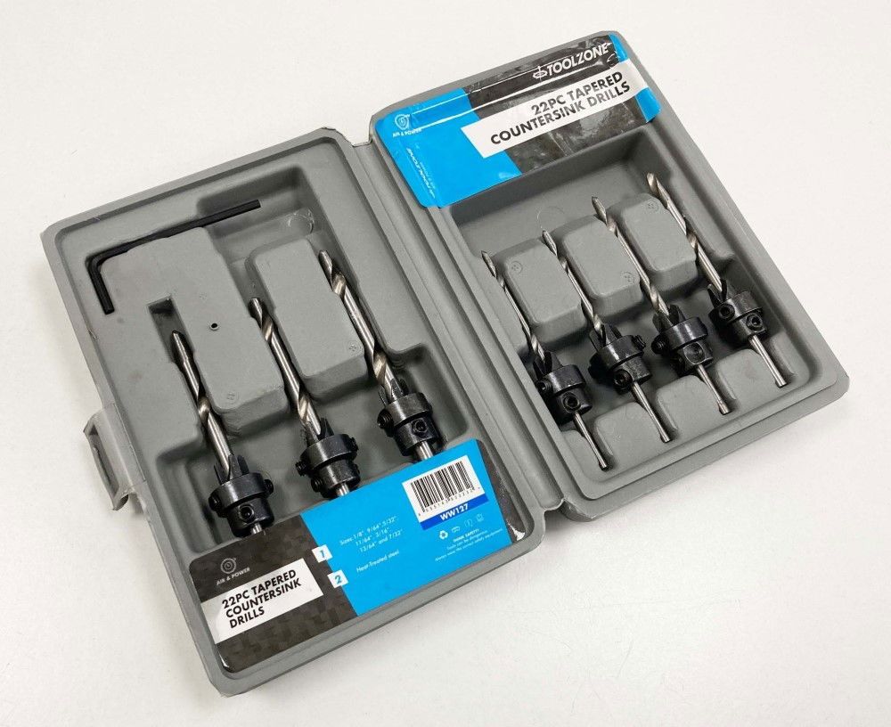 TAPERED COUNTERSINK DRILL SET 22PC HEAT-TREATED STEEL SIZES 1/8″ TO 7/32″ – TOOLZONE KDPWW127