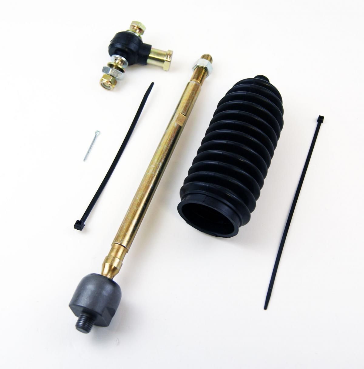 This kit includes both inner and outer tie rod ends, including the shaft that connects to the steering rack and the outer tie rod end. It also contains a boot and required hardware for the left (driver) side.