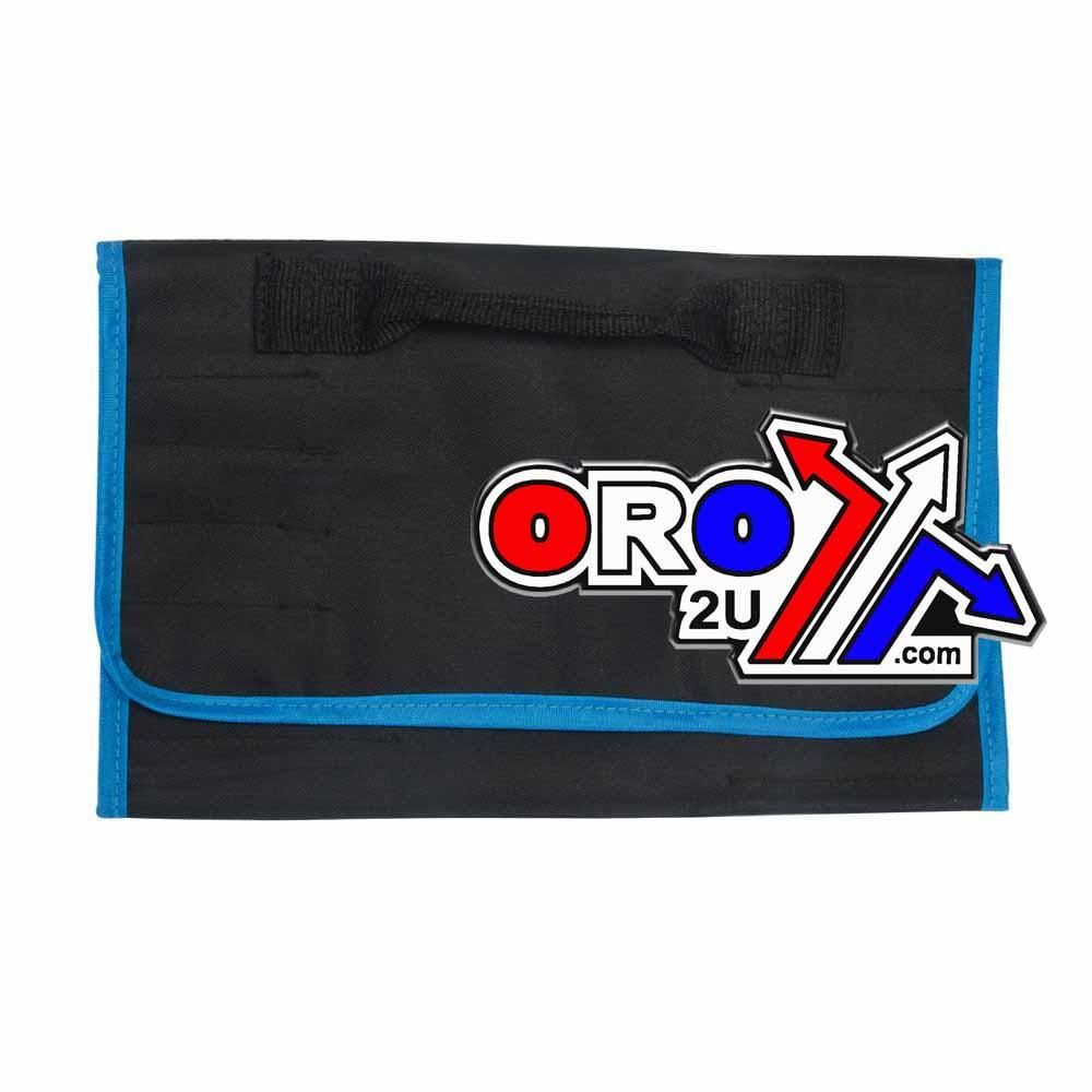 Multi pocket tool roll with elasticated tool holders and carrying handles. Tear and stain-resistant ballistic nylon. Colours may vary.