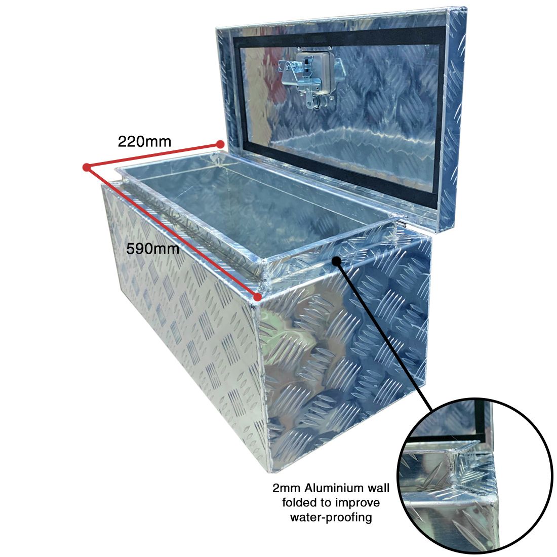 TRAILER STORAGE BOX 60L 675mx300mmx300mm ALUMINIUM CHEQUER PLATE