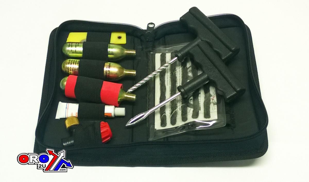 BAG TUBELESS TYRE REPAIR KIT. OOLS, CO2 BOTTLES, PATCH AND GLUE.