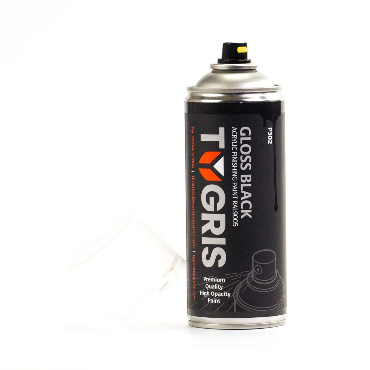 TYGRIS GLOSS BLACK AEROSOL SPRAY PAINT 400ML ACRYLIC RAL9005