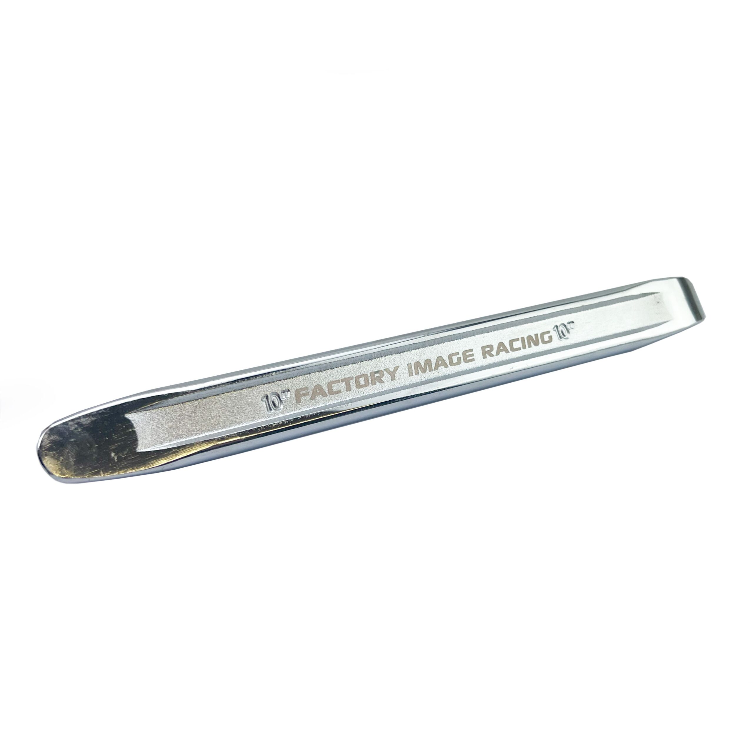 This set of two tyre levers from Factory Image Racing are made from hardened Chrome Vanadium tool steel, offering high durability and resistance to wear. At 240mm in length, the levers are designed for professional garage use and provide the strength needed to handle tough tyre changes. The double compound curve allows for better leverage and efficiency, while their versatile design makes them suitable for additional tasks such as bearing removal.