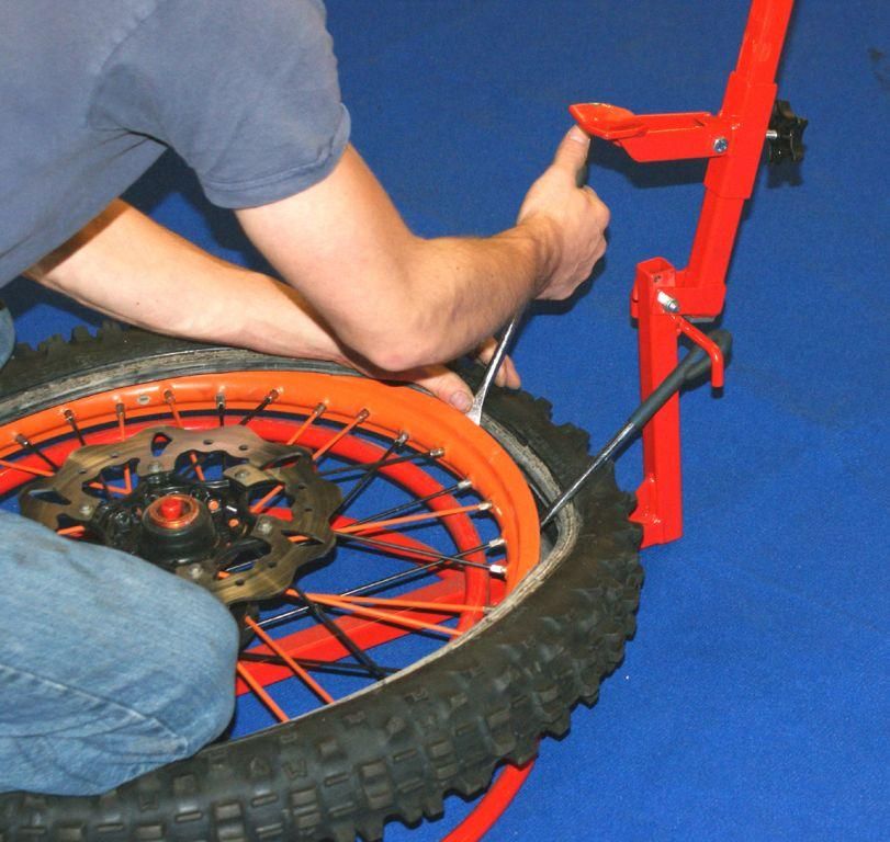 Makes breaking even the most toughest of beads easier! Holds wheel in place during tyre change and breaks bead with bead breaker. Also features a tyre lever holder on frame.