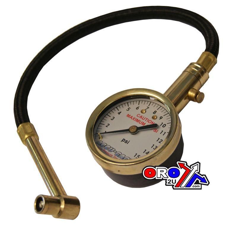 TYRE PRESSURE GAUGE 15 PSI., WITH HOSE & BLEEDER 90* TIP, RA15X